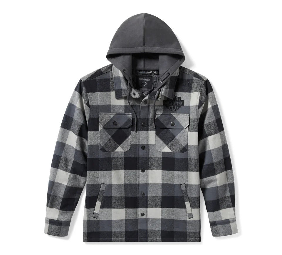 HARLEY DAVIDSON Giacca camicia con cappuccio Traveler - Plaid - Asphalt & Harley Black REF.96806-25VM