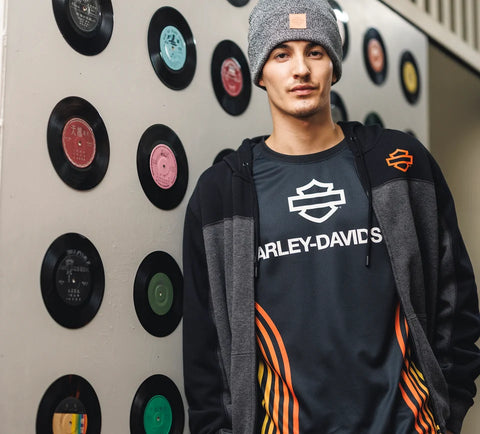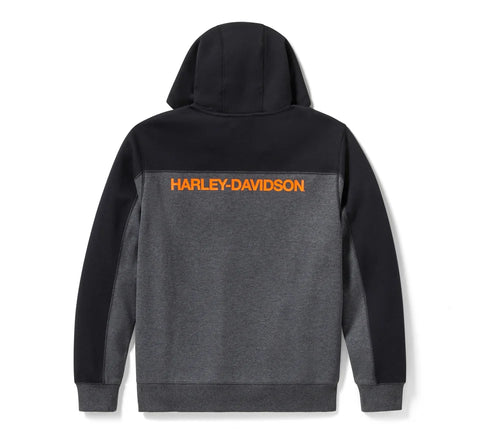 Le réchauffeur de chaleur H-D® Tech ajoute de la vivacité au style de moto classique. Fabriqué en tissu de verrouillage robuste en coton lourd / polyester lourd, il se caractérise par l'ajustement détendu. Il est équipé d'une ghetta de cou incorporée à porter sur la bouche et le nez pour bloquer le vent ou rejeter la poussière et les insectes. Cela le rend idéal à porter sous des vêtements techniques. Le sweat à capuche de cet homme avec zip à l'avant est fini avec nos graphiques contemporains et un design colorblock qui saute à l'œil.