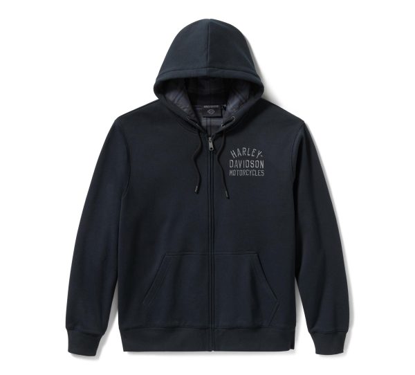 Harley-Davidson® Felpa zippata con cappuccio Plaid Lined – Black 96783-25VM REF.96783-25VM